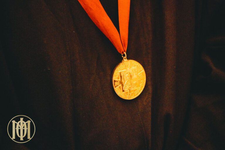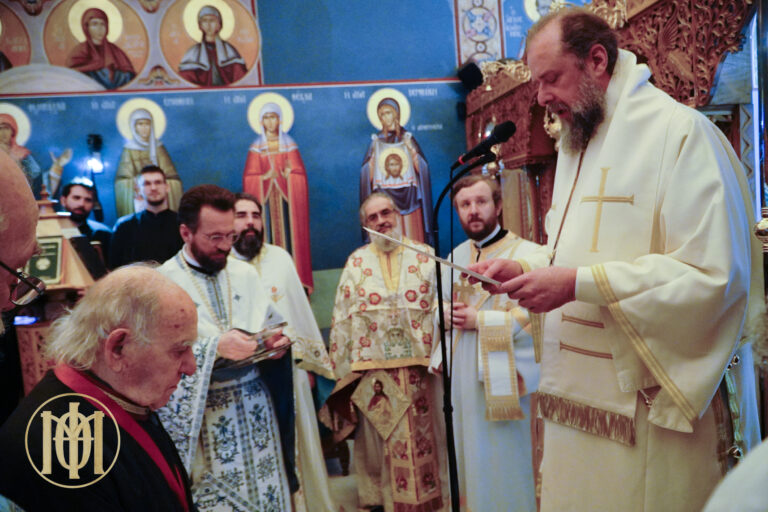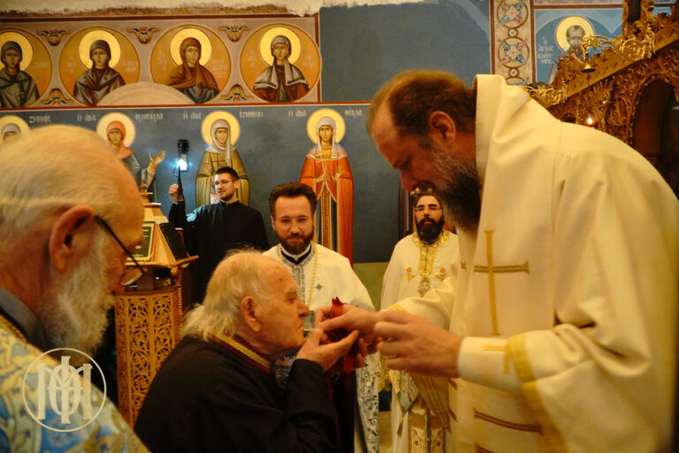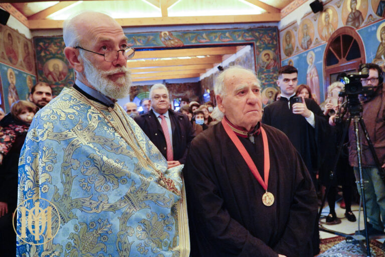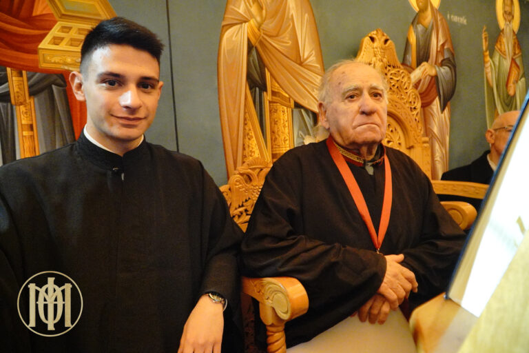 Προ της απολύσεως, ο Μητροπολίτης μας, απένειμε το χρυσό μετάλλιο του Αγίου Φιλοθέου, Αρχιεπισκόπου Θεσσαλονίκης, καθώς και τιμητική πλακέτα εκ μέρους του Εκκλησιαστικού Συμβουλίου, στον επί πεντηκονταετία ιεροψάλτη του ναού κ. Γεώργιο Μπερμπερίδη.