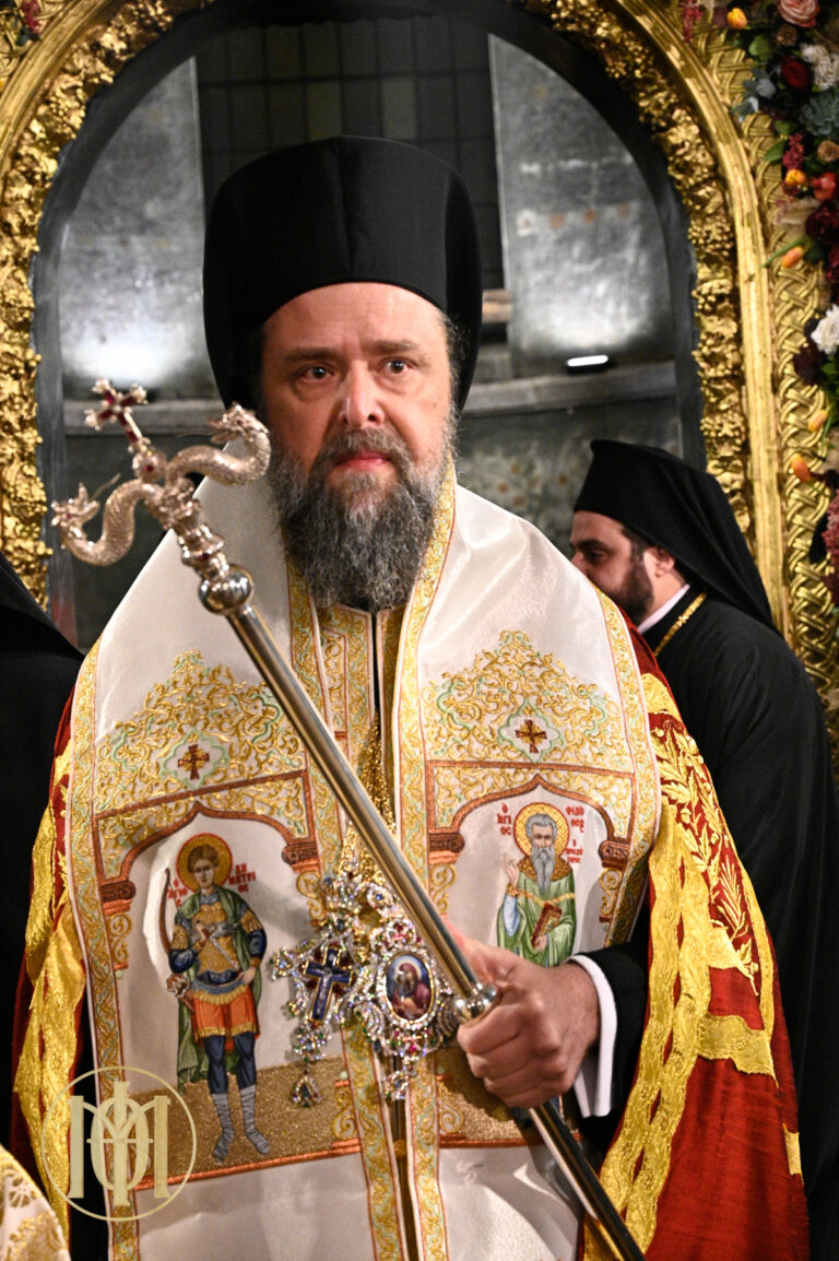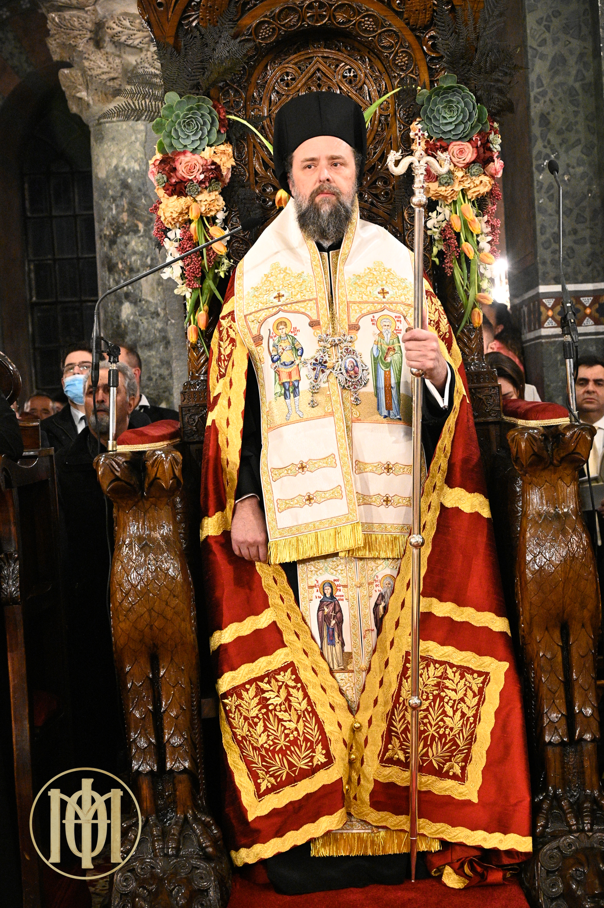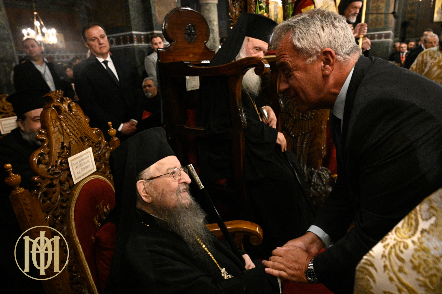 Εὐχαριστίες ὀφείλω ἀκόμη στόν ἐκπρόσωπο τῆς Ἑλληνικῆς Κυβερνήσεως Ὑπουργό Ἐπικρατείας κ. Μάκη Βορίδη, τόν Περιφερειάρχη Κεντρικῆς Μακεδονίας κ. Ἀπόστολο Τζιτζικώστα, τόν Δήμαρχο Θεσσαλονίκης κ. Κωνσταντῖνο Ζέρβα γιά τούς καλούς τους λόγους, ὅπως καί σέ ὅλους τούς παρόντες ἐπικεφαλῆς καί ἐκπροσώπους τῶν πάσης φύσεως Ἀρχῶν, πολιτικῶν, δικαστικῶν καί στρατιωτικῶν, εὐχόμενος νά ἔχουν ὅλοι τους τόν Ἄνωθεν φωτισμό στίς ἀποφάσεις τους ὑπέρ τοῦ λαοῦ καί τῆς Πατρίδος μας «ἵνα καί ἡμεῖς ἐν τῇ γαλήνῃ αὐτῶν ἥρεμον καί ἡσύχιον βίον διάγωμεν ἐν πάσῃ εὐσεβείᾳ καί σεμνότητι», προσβλέποντας σέ ἀγαστή συνεργασία, στά ὅρια τῆς διακριτότητας τῶν ρόλων ἑνός ἑκάστου, μέ γνώμονα τό κοινό συμφέρον τοῦ λαοῦ καί τοῦ τόπου.