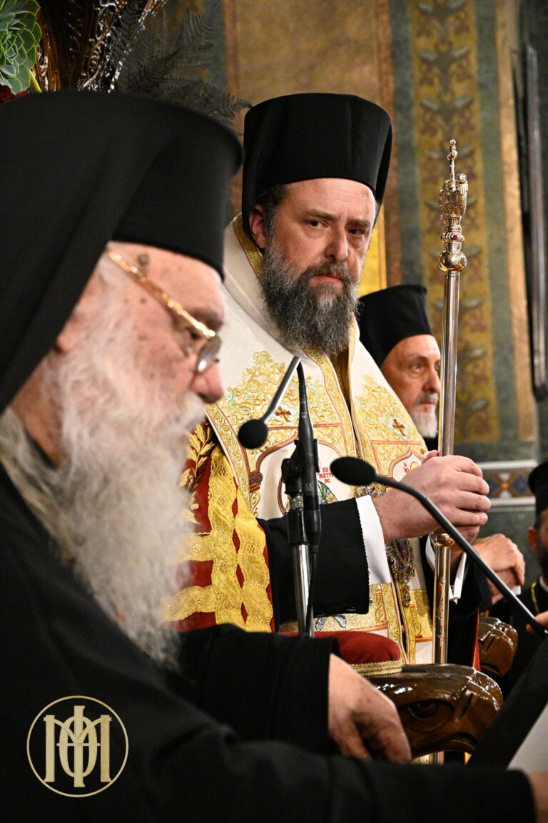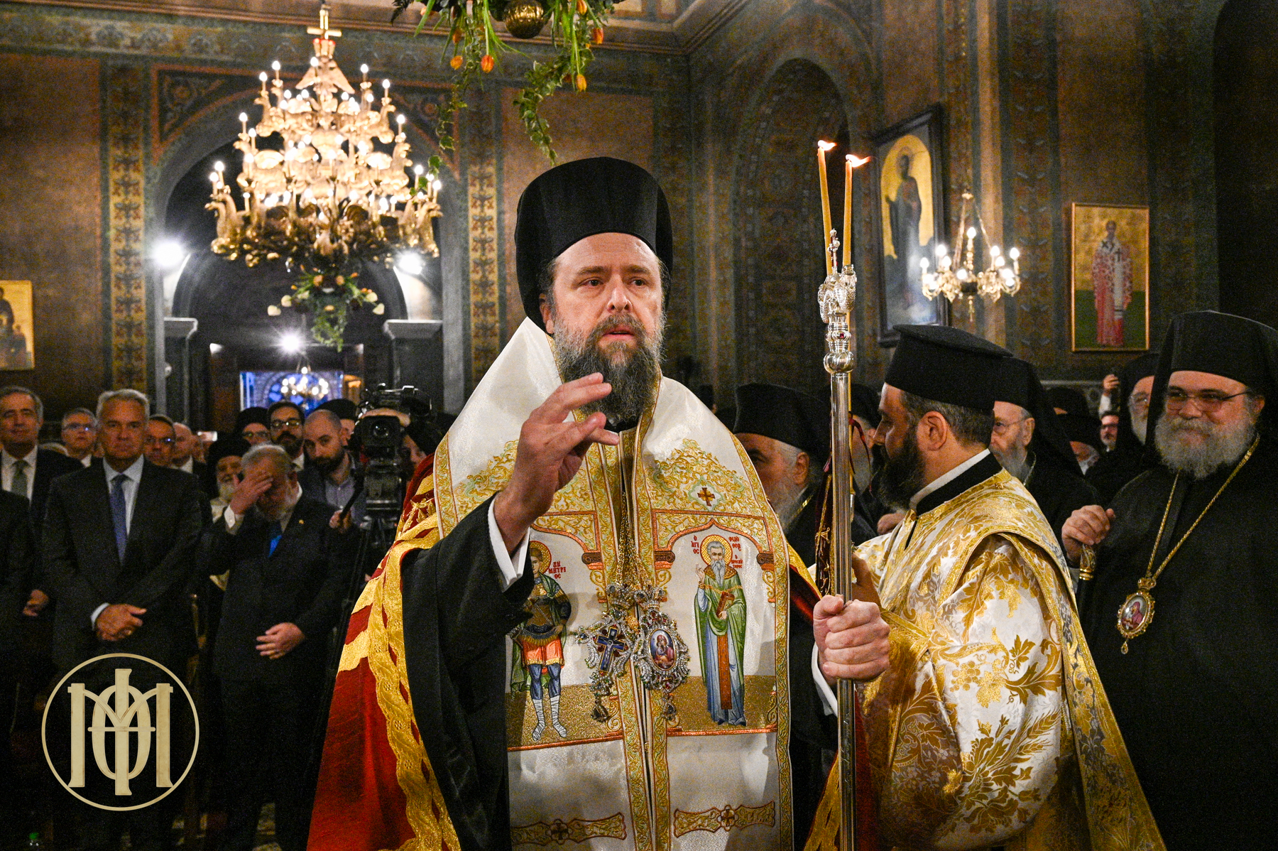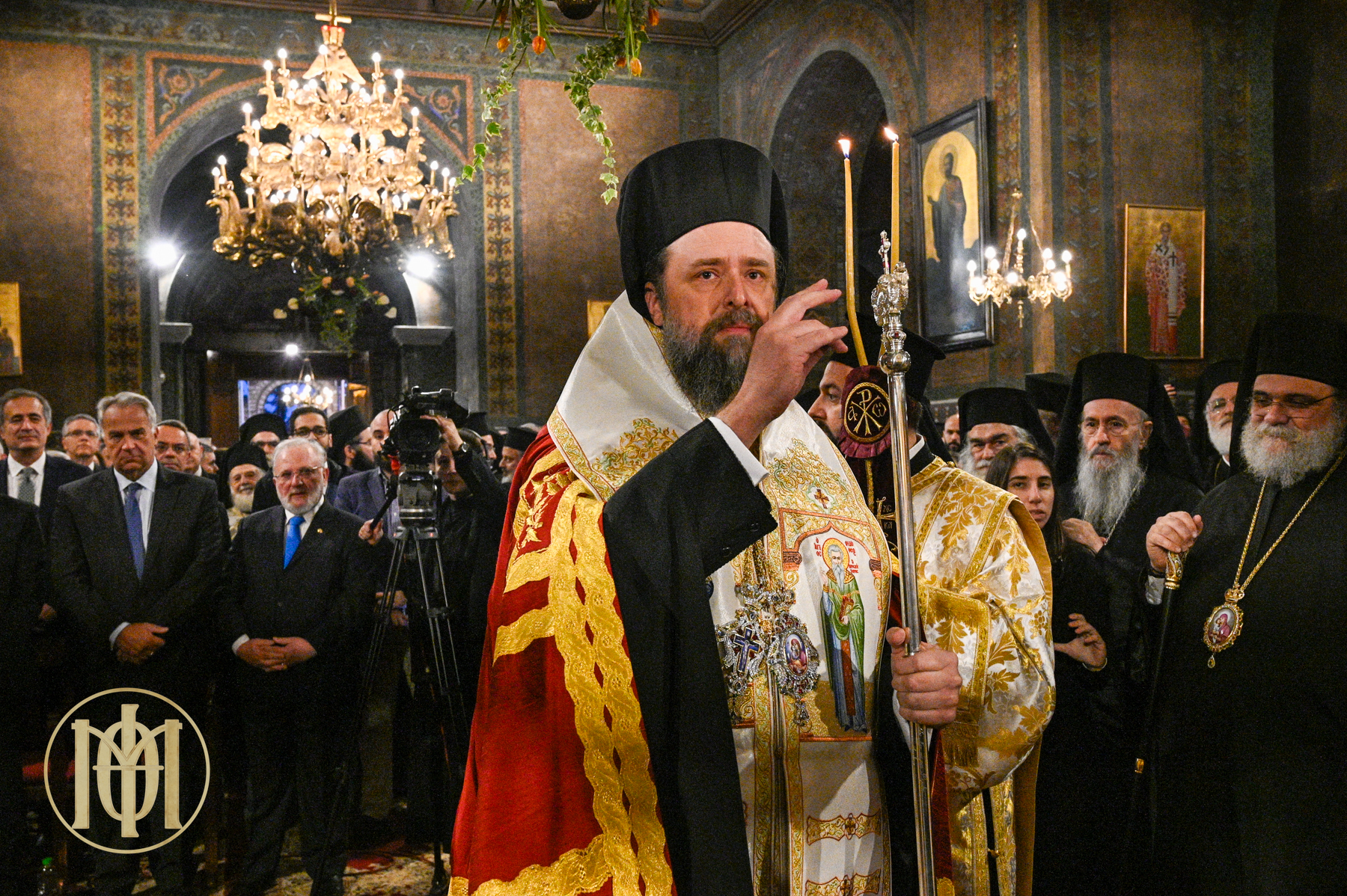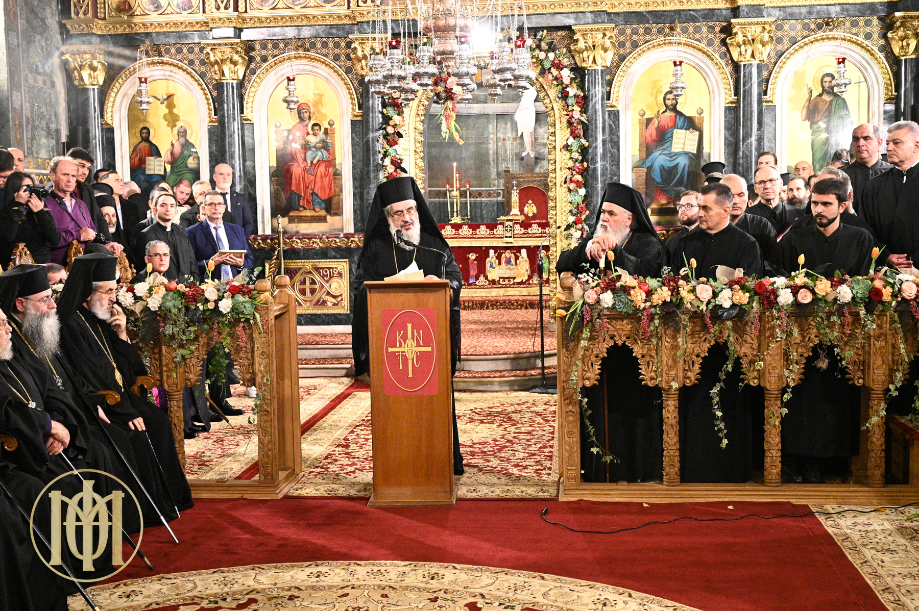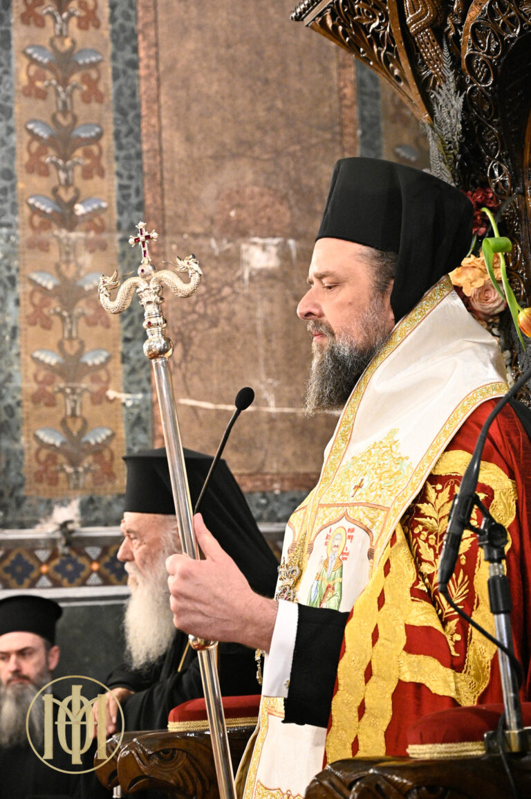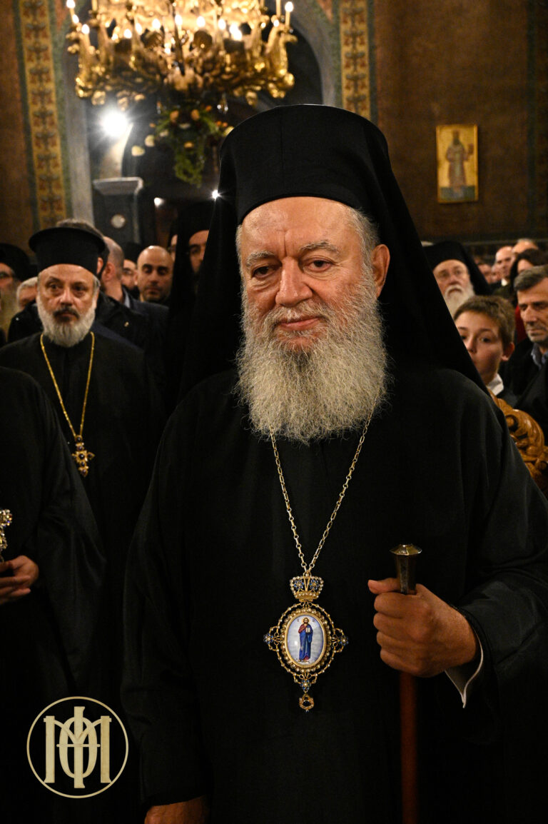 Τά σεπτά μέλη τῆς Ἱεραρχίας τῆς Ἐκκλησίας τῆς Ἑλλάδος, τά παρόντα καί τά ἀπόντα, τούς παρόντες ἀδελφούς Ἱεράρχες ἄλλων Πατριαρχείων καί Αὐτοκεφάλων Ἐκκλησιῶν καί τούς τιμίους συνοδούς τους, θερμότατα εὐχαριστῶ γιά τήν προσευχητική συμμετοχή τους στή χαρά αὐτήν τῆς Τοπικῆς μας Ἐκκλησίας καί τήν τιμή πού μοῦ περιποιοῦν.