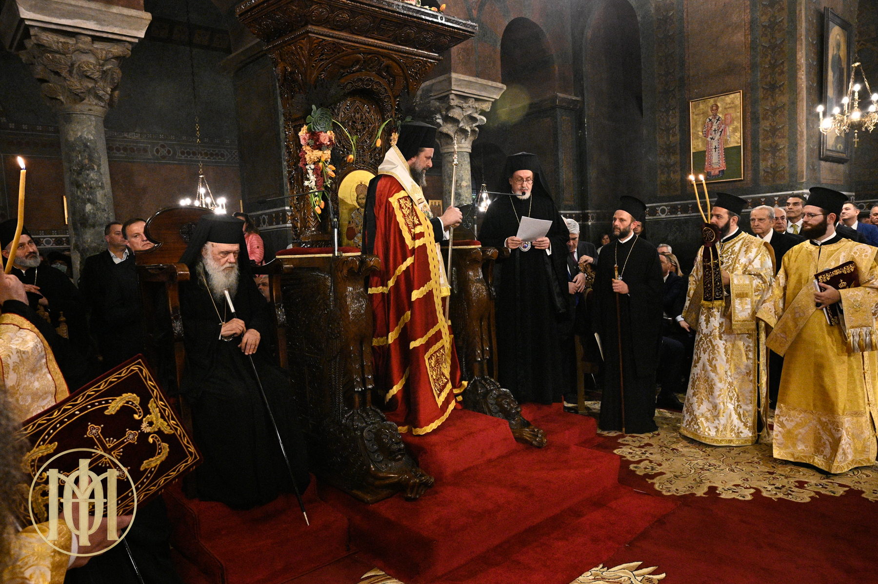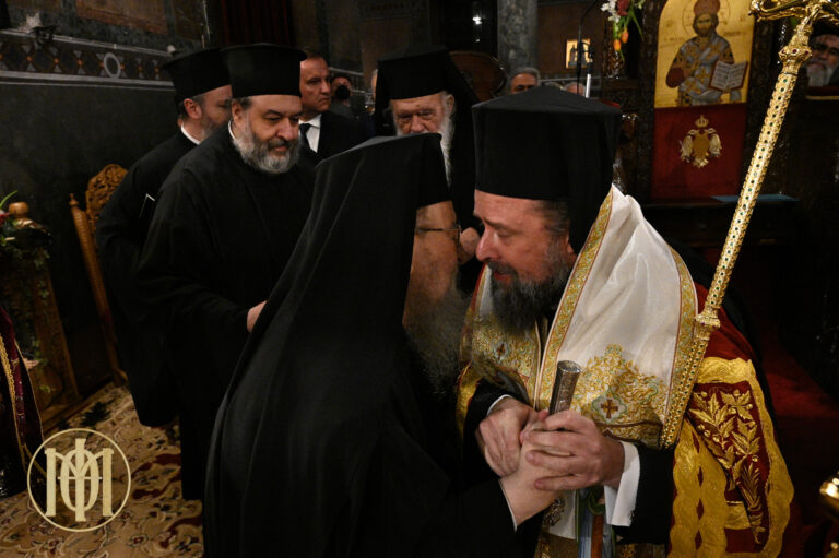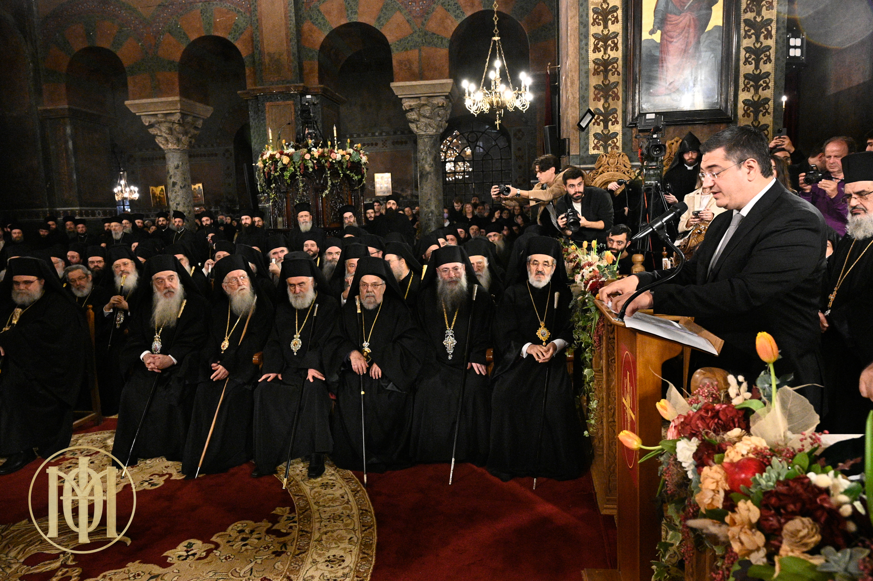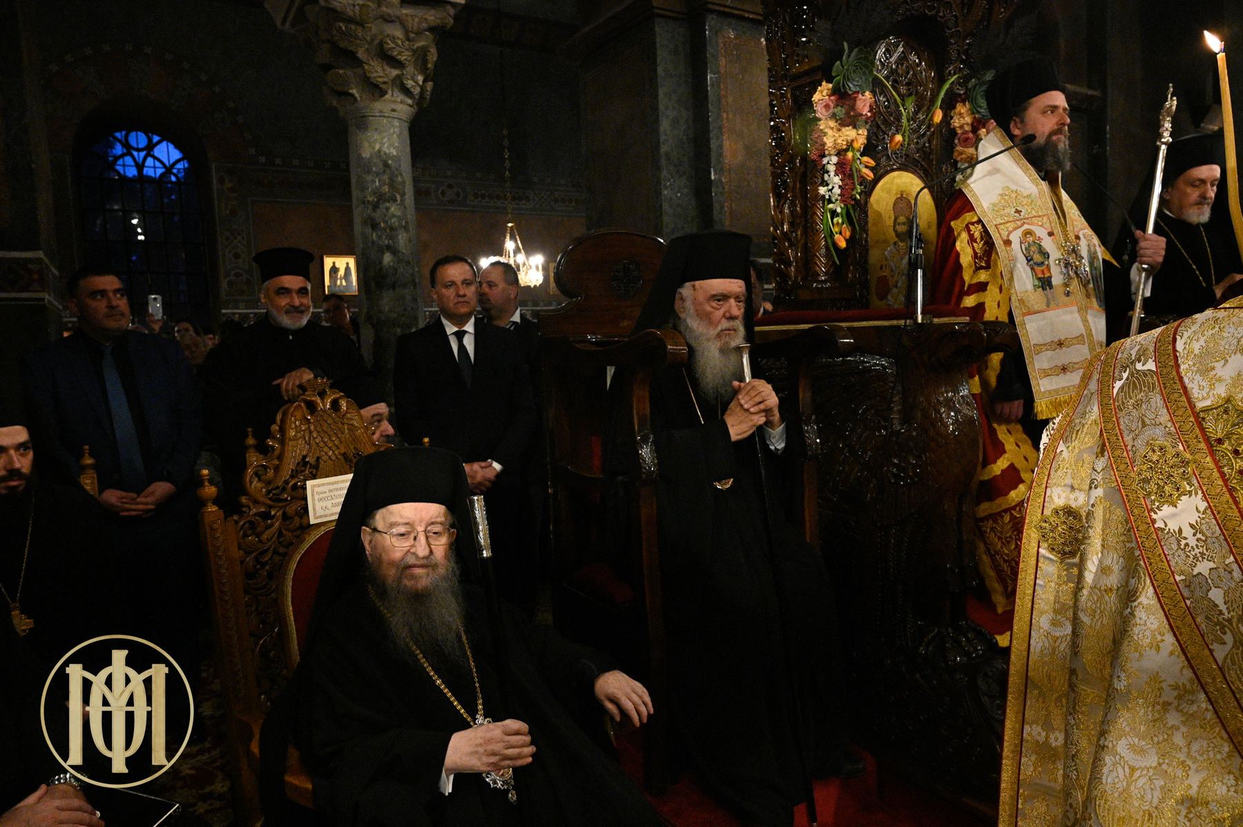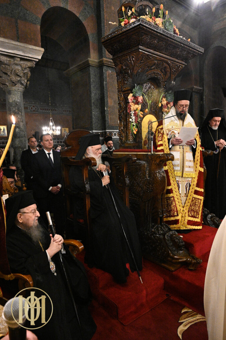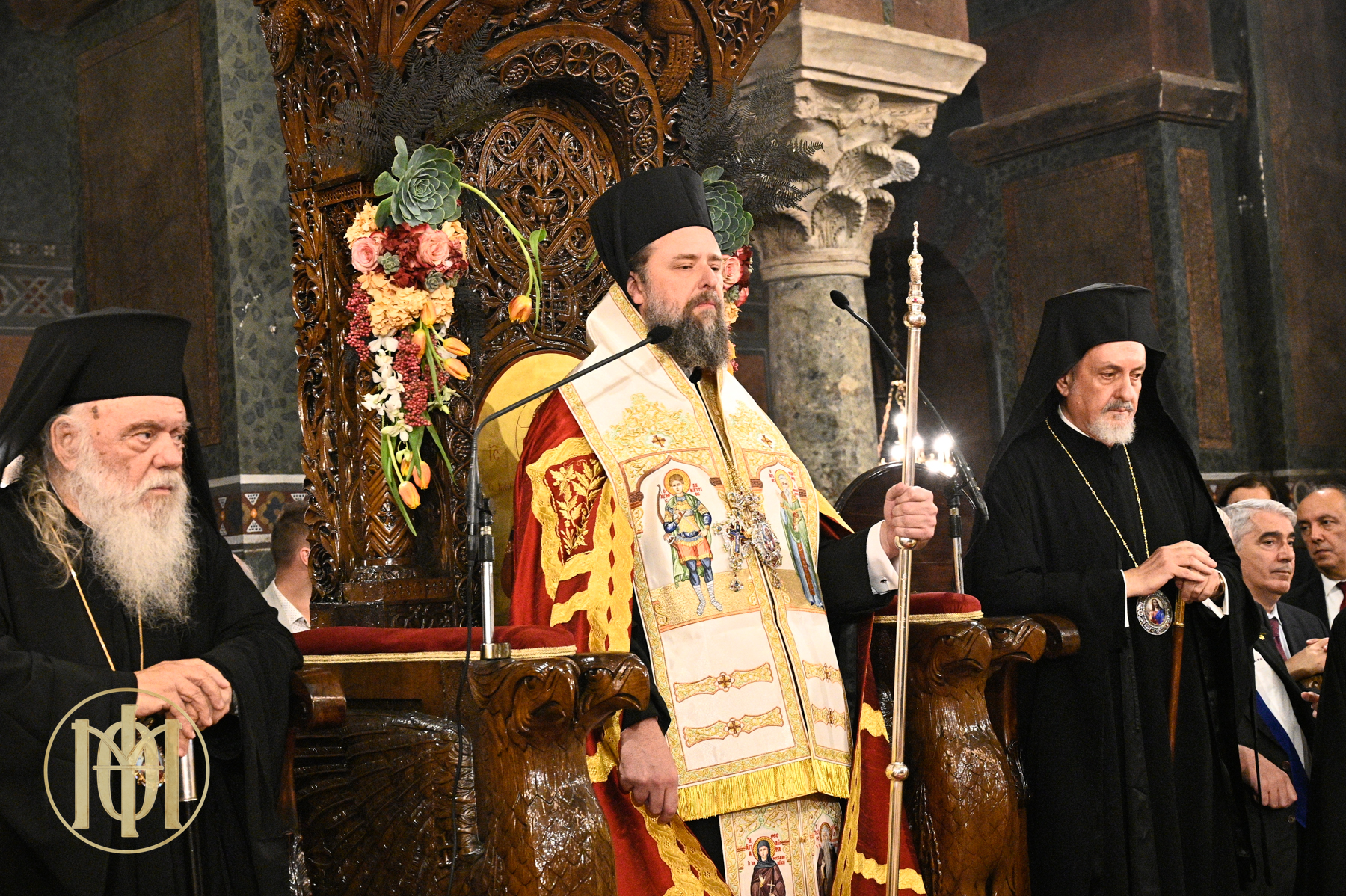 Τά σεπτά μέλη τῆς Ἱεραρχίας τῆς Ἐκκλησίας τῆς Ἑλλάδος, τά παρόντα καί τά ἀπόντα, τούς παρόντες ἀδελφούς Ἱεράρχες ἄλλων Πατριαρχείων καί Αὐτοκεφάλων Ἐκκλησιῶν καί τούς τιμίους συνοδούς τους, θερμότατα εὐχαριστῶ γιά τήν προσευχητική συμμετοχή τους στή χαρά αὐτήν τῆς Τοπικῆς μας Ἐκκλησίας καί τήν τιμή πού μοῦ περιποιοῦν.