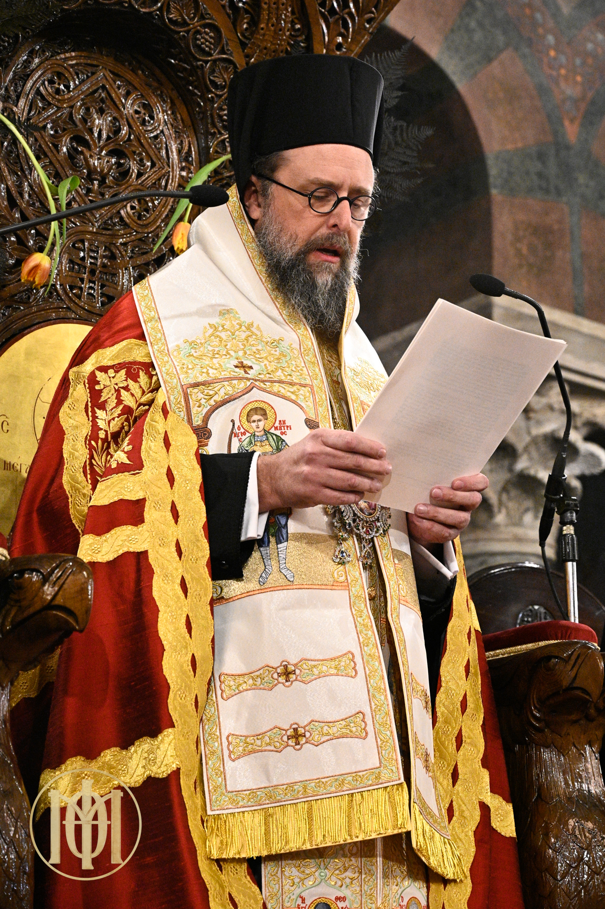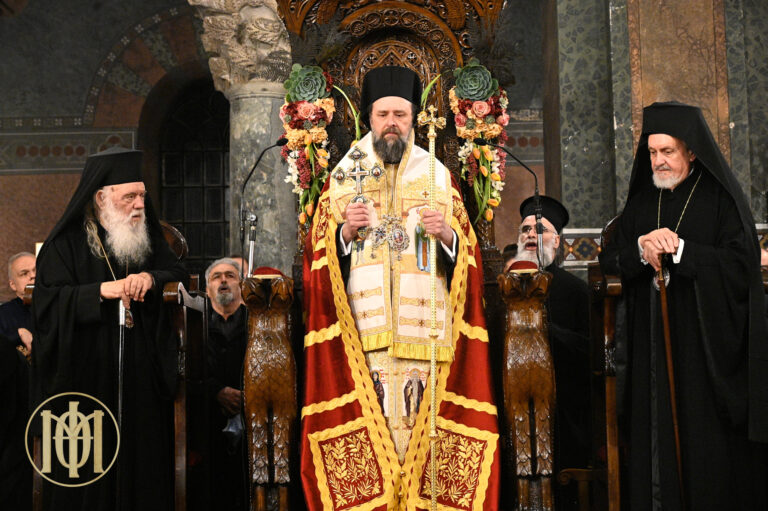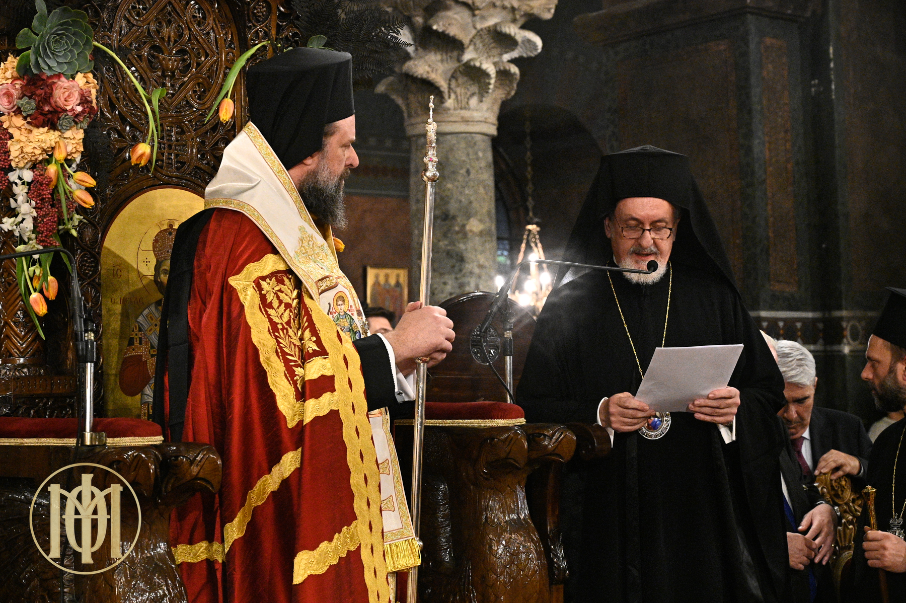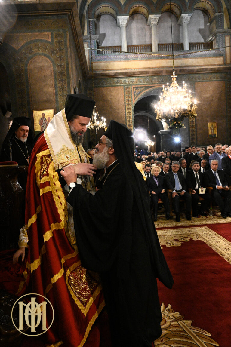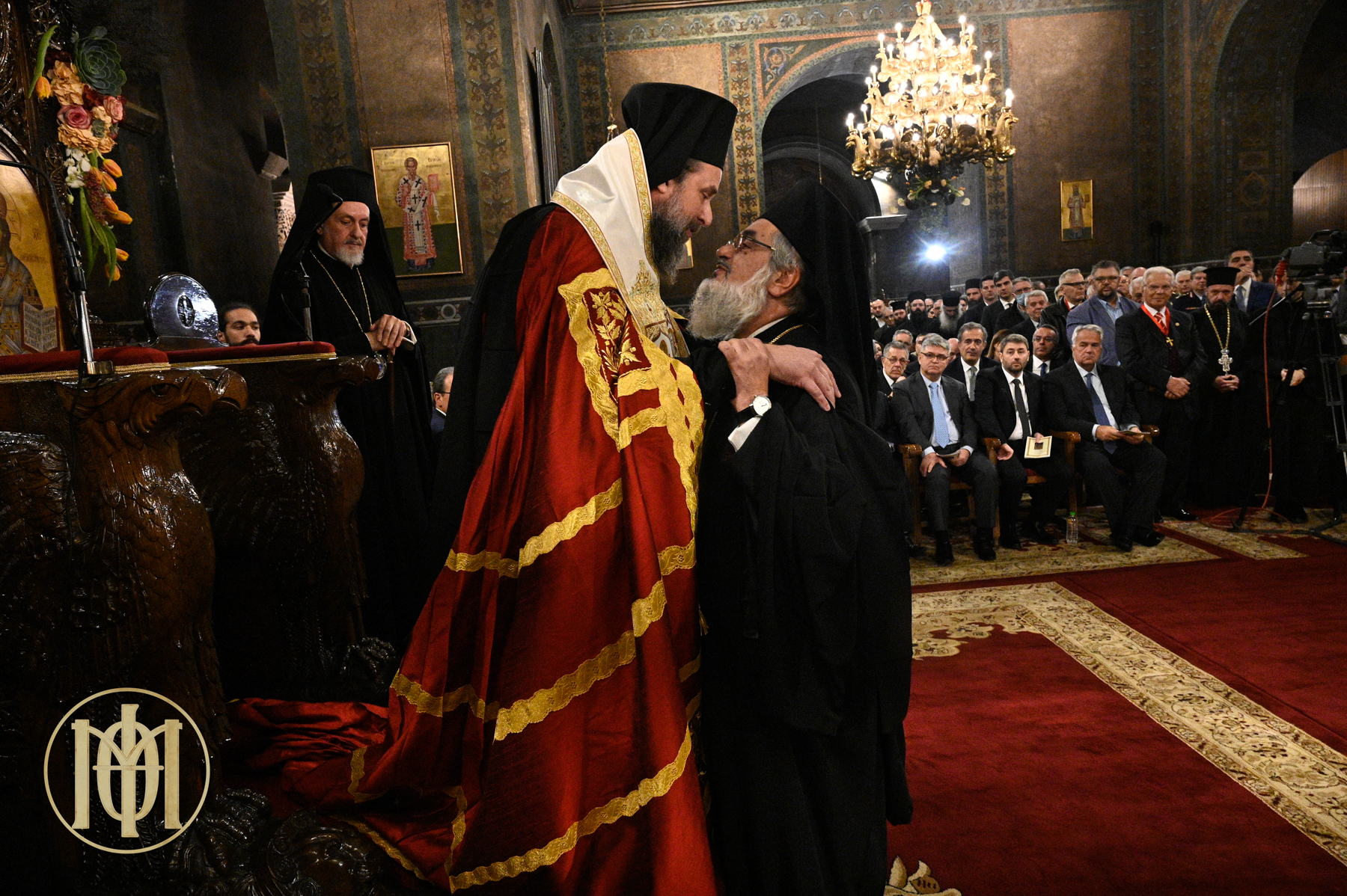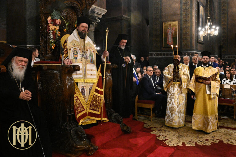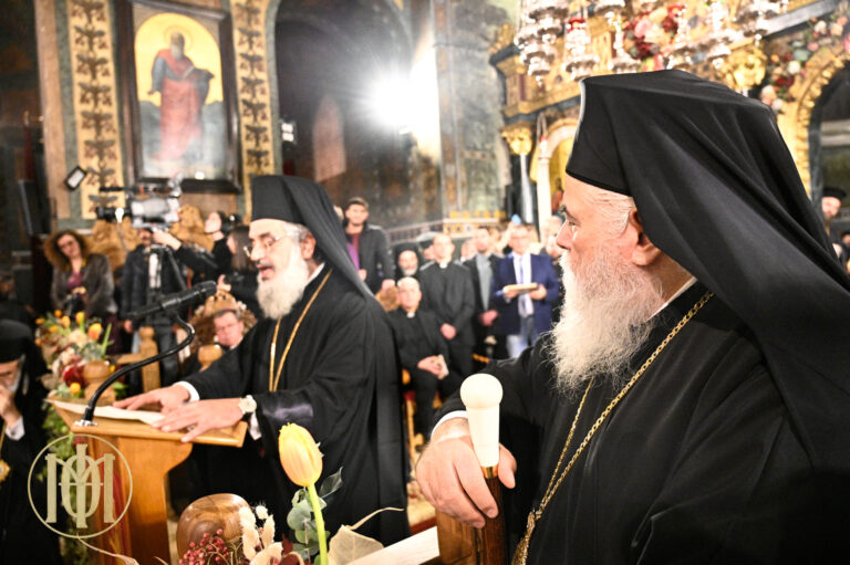 Τά σεπτά μέλη τῆς Ἱεραρχίας τῆς Ἐκκλησίας τῆς Ἑλλάδος, τά παρόντα καί τά ἀπόντα, τούς παρόντες ἀδελφούς Ἱεράρχες ἄλλων Πατριαρχείων καί Αὐτοκεφάλων Ἐκκλησιῶν καί τούς τιμίους συνοδούς τους, θερμότατα εὐχαριστῶ γιά τήν προσευχητική συμμετοχή τους στή χαρά αὐτήν τῆς Τοπικῆς μας Ἐκκλησίας καί τήν τιμή πού μοῦ περιποιοῦν.