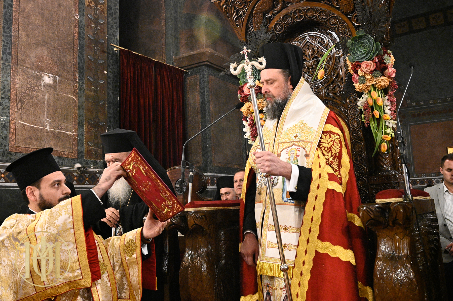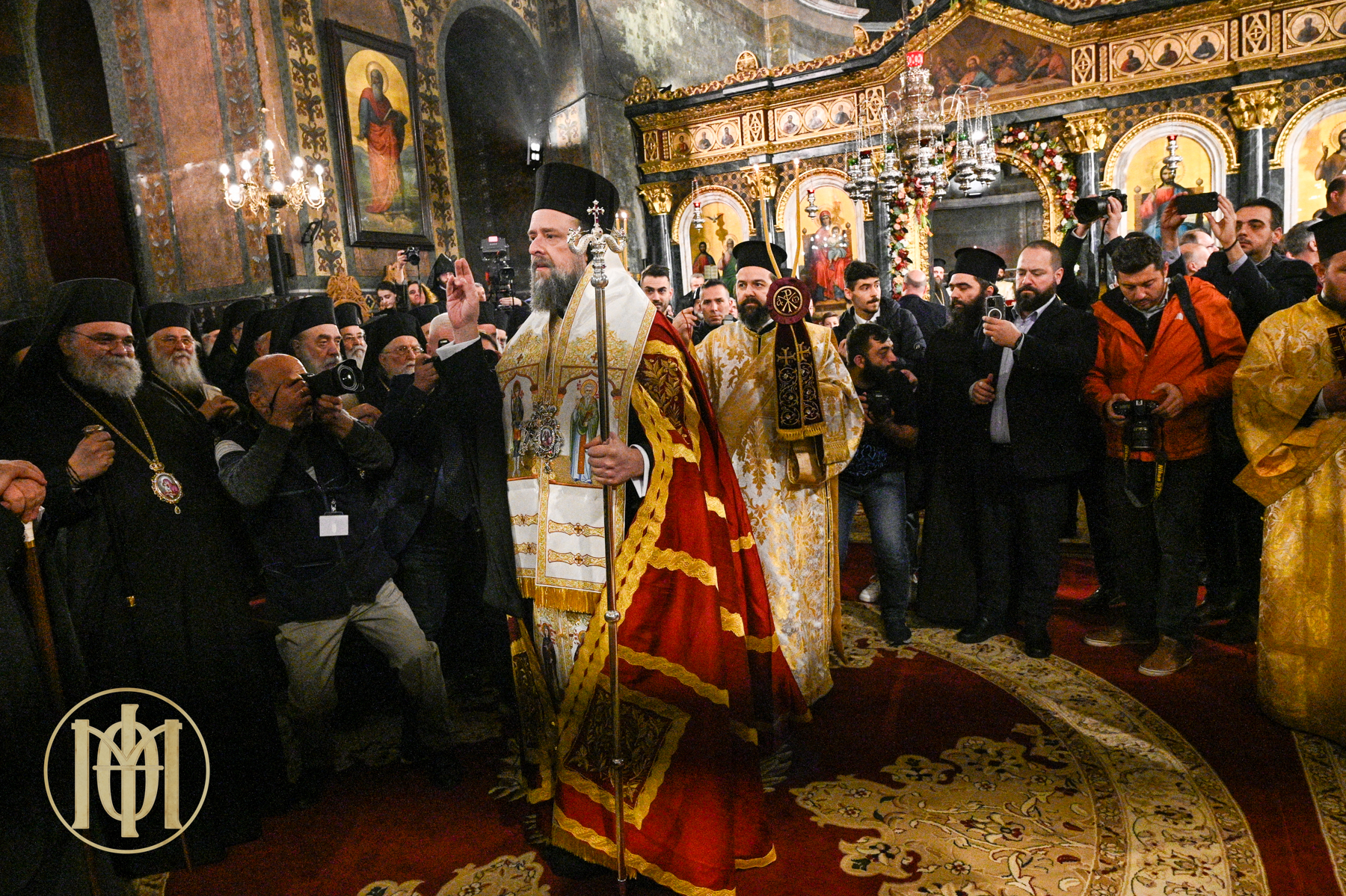 Εὐχαριστῶ ἰδιαιτέρως τόν Σεβασμιώτατο Μητροπολίτη Νεαπόλεως καί Σταυρουπόλεως κ. Βαρνάβα, τόν ὁποῖο ὁ Μακαριώτατος Ἀρχιεπίσκοπος κ. Ἱερώνυμος ὡς τοποτηρητής ὅρισε νά ἐπιβλέπει ἐκ μέρους του τήν καλή λειτουργία τῆς Ἱερᾶς Μητροπόλεως κατά τό διάστημα αὐτό. Ὁ Σεβασμιώτατος καί οἱ καλοί του συνεργάτες ἀπό τήν Ἱερά Μητρόπολή του, σέ ἀγαστή συνεργασία μέ τόν Πρωτοσύγκελλο π. Ἰάκωβο -τόν ὁποῖο ἰδιαιτέρως εὐχαριστῶ γιά ὅσα καλά καί ἀγαθά εἶπε καλωσορίζοντάς με-, τόν Γενικό Ἀρχιερατικό Ἐπίτροπο π. Φώτιο, ἀλλά καί ὅλους τούς συνεργάτες τῶν Γραφείων τῆς Ἱερᾶς Μητροπόλεως Θεσσαλονίκης, κληρικούς καί λαϊκούς, τούς Ἐφημερίους καί τό Ἐκκλησιαστικό Συμβούλιο τοῦ Καθεδρικοῦ Ἱεροῦ Ναοῦ τῆς τοῦ Θεοῦ Σοφίας, ὅπου εὑρισκόμεθα, τούς καλλίφωνους ἱεροψάλτες, καθώς καί ὅλον τόν ἱερό Κλῆρο καί τούς λαϊκούς, τό «βασίλειον ἱεράτευμα» τῆς τοπικῆς μας Ἐκκλησίας, μαζί μέ τίς τοπικές Ἀρχές, τούς τοπικούς φορεῖς καί Συλλόγους καί τά Μέσα Ἐπικοινωνίας ἐργάστηκαν ἀποδοτικά καί μέ ἀγάπη γιά νά φθάσουμε στήν παροῦσα ὥρα. Εὔχομαι ὁ Θεός νά ἀνταποδώσει σέ ὅλους πολλαπλασίως αὐτήν τήν ἀγάπη καί τή φροντίδα.
