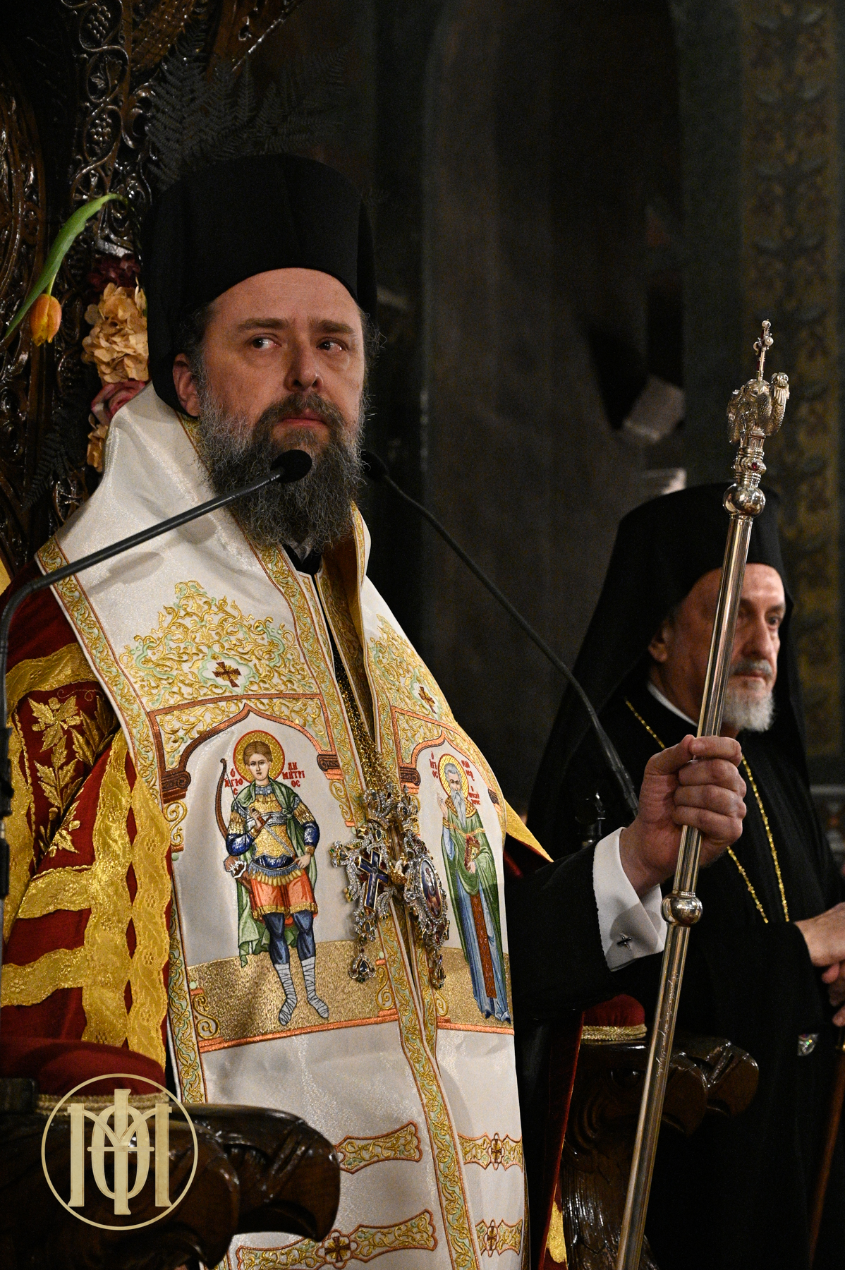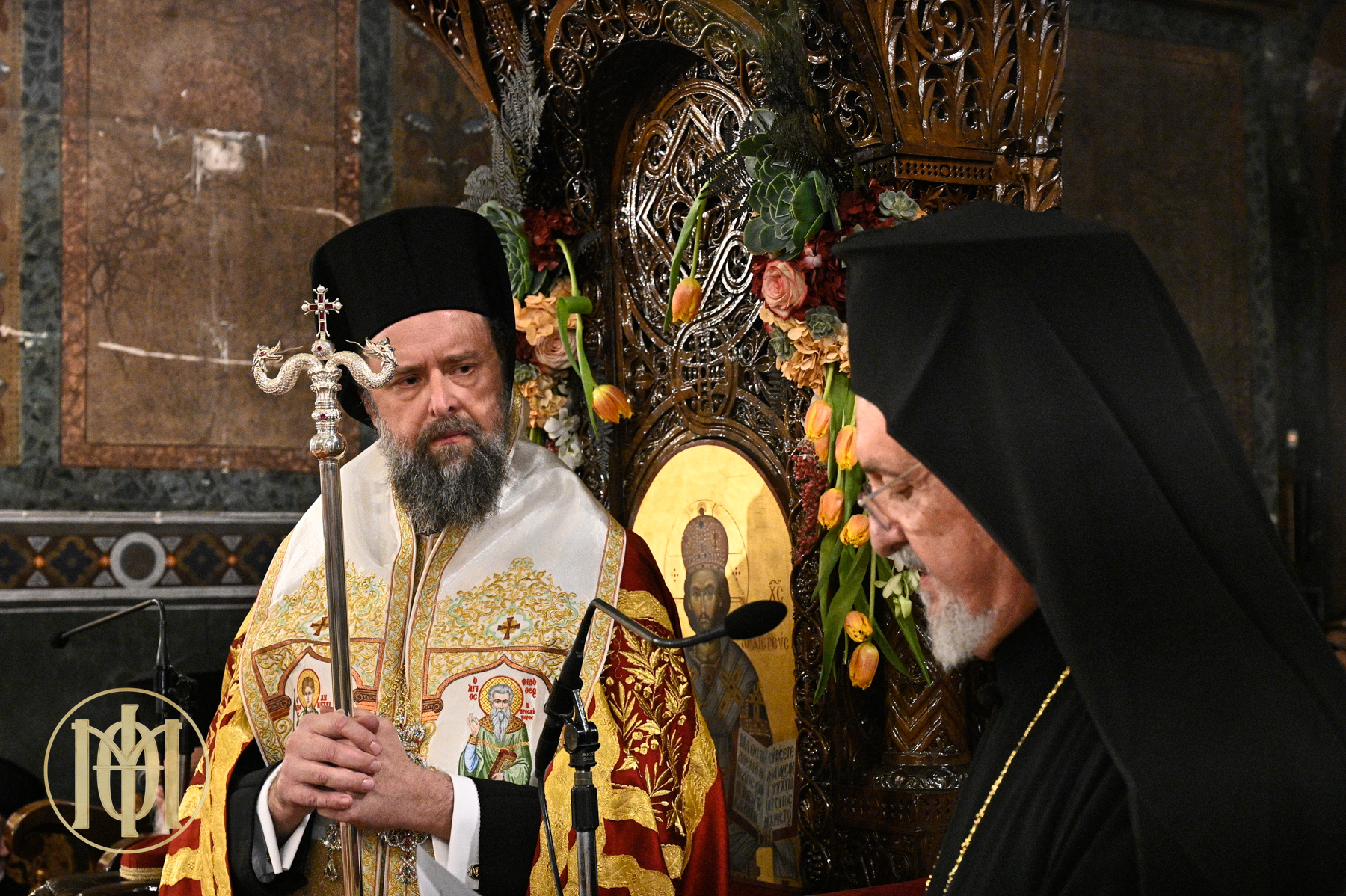 Εὐχαριστῶ τόν Σεβασμιώτατο ἐκπρόσωπο τῆς Αὐτοῦ Θειοτάτης Παναγιότητος, τοῦ Οἰκουμενικοῦ Πατριάρχου κ. Βαρθολομαίου, Μητροπολίτη Γέροντα Χαλκηδόνος κ. Ἐμμανουήλ γιά τήν τιμητική του παρουσία καί τίς γεμάτες ἀπό τή σοφία τῆς Μητρός Ἁγίας τοῦ Χριστοῦ Μεγάλης Ἐκκλησίας διδαχές του. Τόν παρακαλῶ νά ὑποβάλει τίς εὐγνώμονες ταπεινές μου εὐχαριστίες, καθώς καί τόν βαθύτατο σεβασμό ὅλης τῆς ἐν Θεσσαλονίκῃ παροικούσης Ἐκκλησίας, πρός τόν Παναγιώτατο καί τόν ἱερότατο θεσμό τοῦ Οἰκουμενικοῦ Πατριαρχείου, τόν ὁποῖο ὑπέρ τό ἥμισυ τοῦ αἰῶνος διακονεῖ.