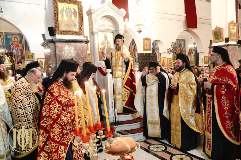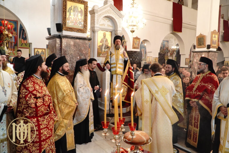 Προ της απολύσεως ο Ποιμενάρχης μας συνεχάρη τον Πρόεδρο του Εκκλησιαστικού Συμβουλίου, π. Ιγνάτιο Ιωαννίδη, ο οποίος με τη συνεργασία των συνεφημερίων του, π. Παναγιώτη Παναγιωταρέα και π. Παντελεήμονος Καραφουλίδη, των μελών των Εκκλησιαστικών Επιτροπών, των εθελοντών και των εργαζομένων του Ιερού Ναού προετοίμασε άριστα τη φετινή Πανήγυρη προς τιμήν του μεγάλου Αγίου της Εκκλησίας μας.