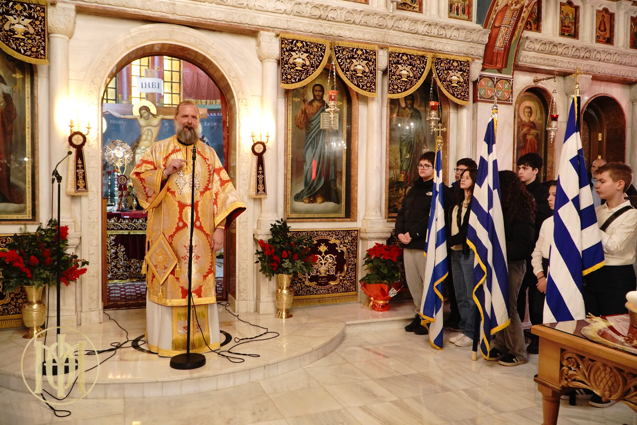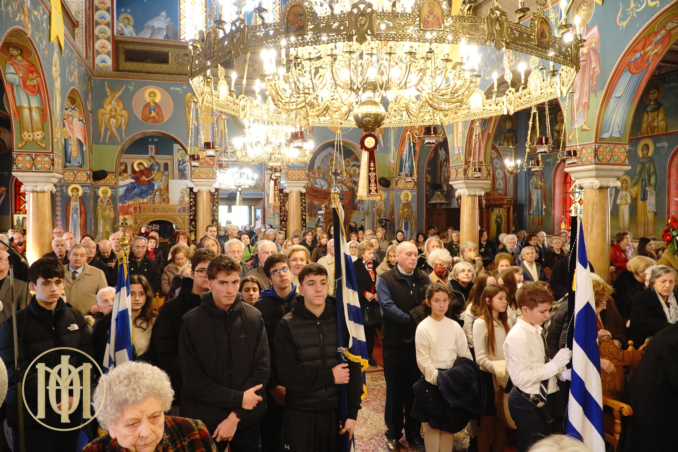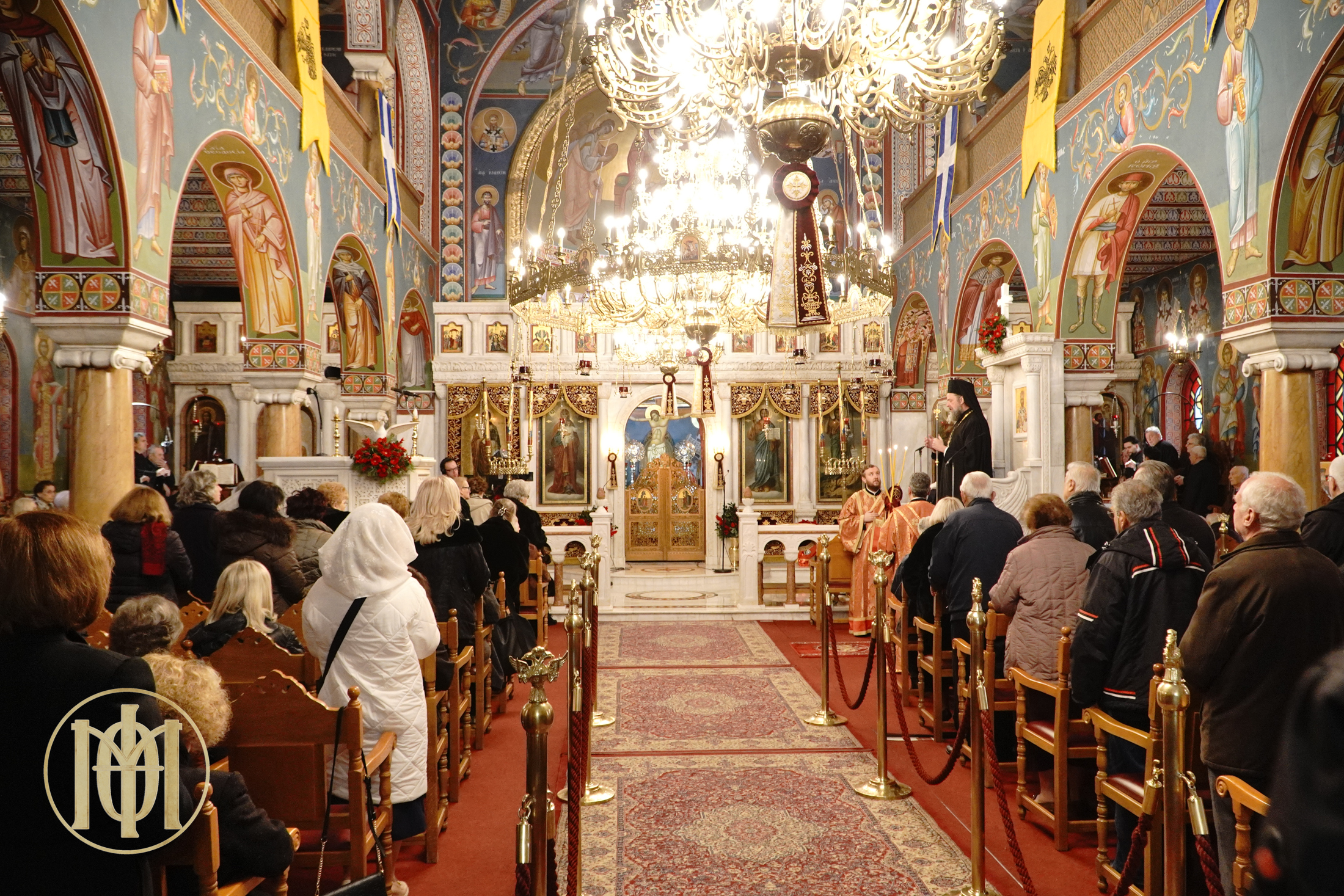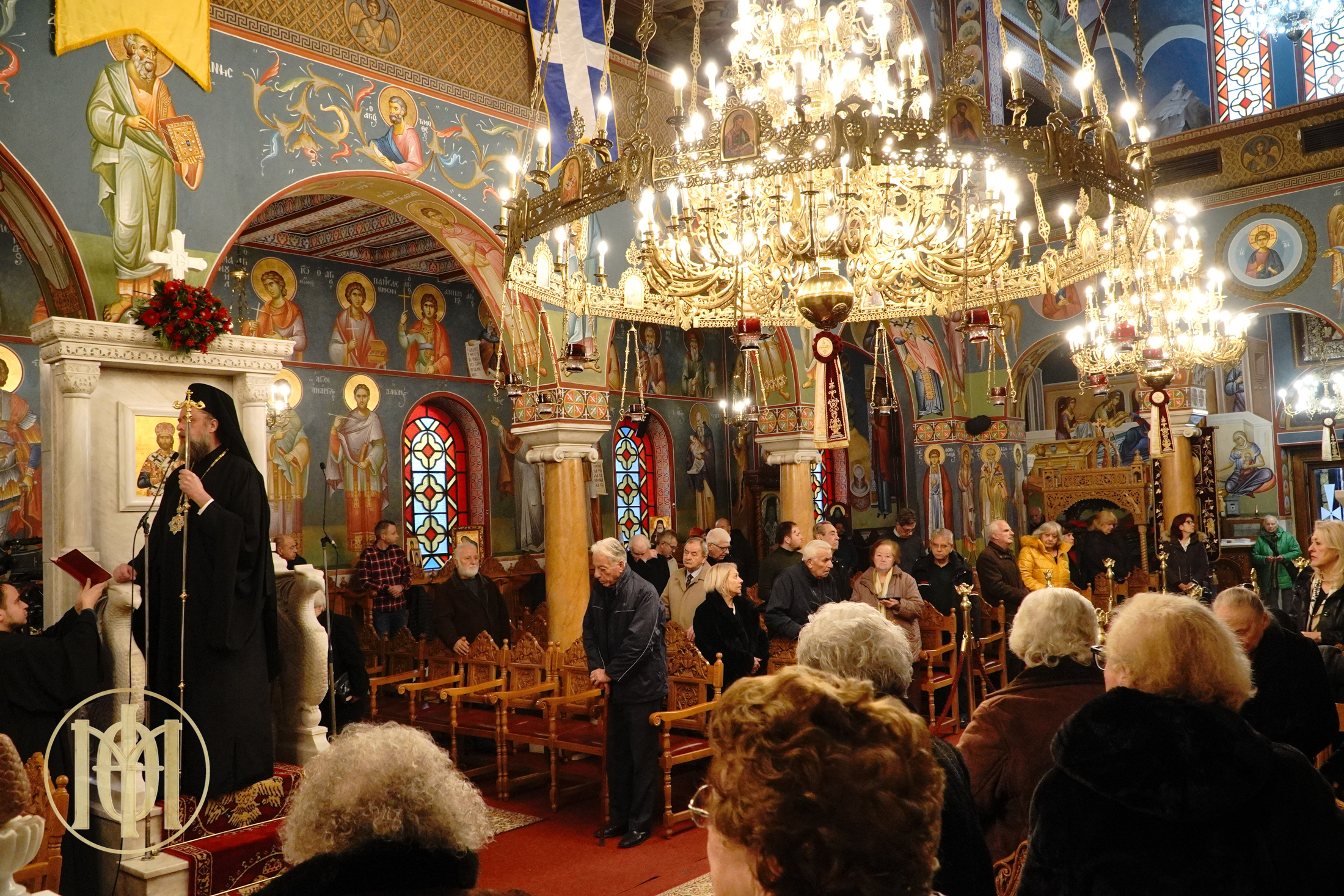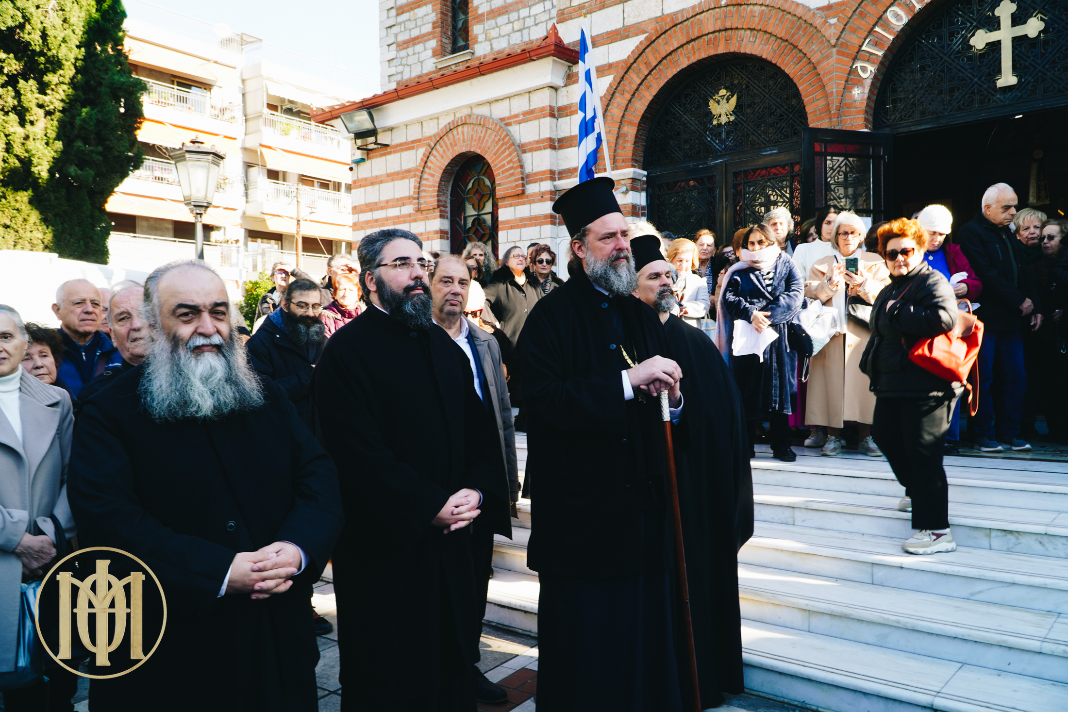 Στο Ιερό Βήμα παρέστησαν συμπροσευχόμενοι οι Σεβασμιώτατοι Μητροπολίτες Βρυούλων κ. Παντελεήμων και Βελεστίνου κ. Δαμασκηνός.