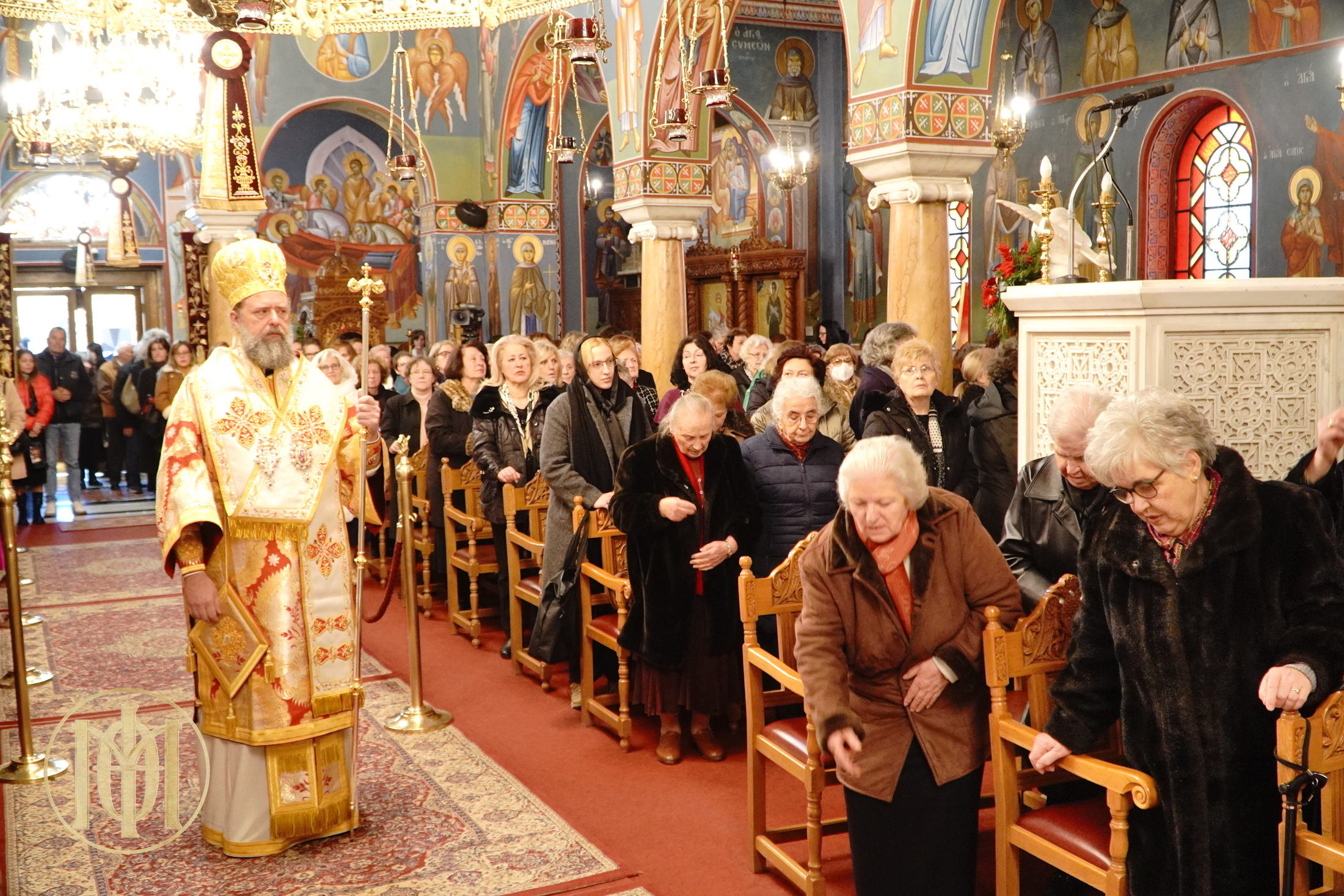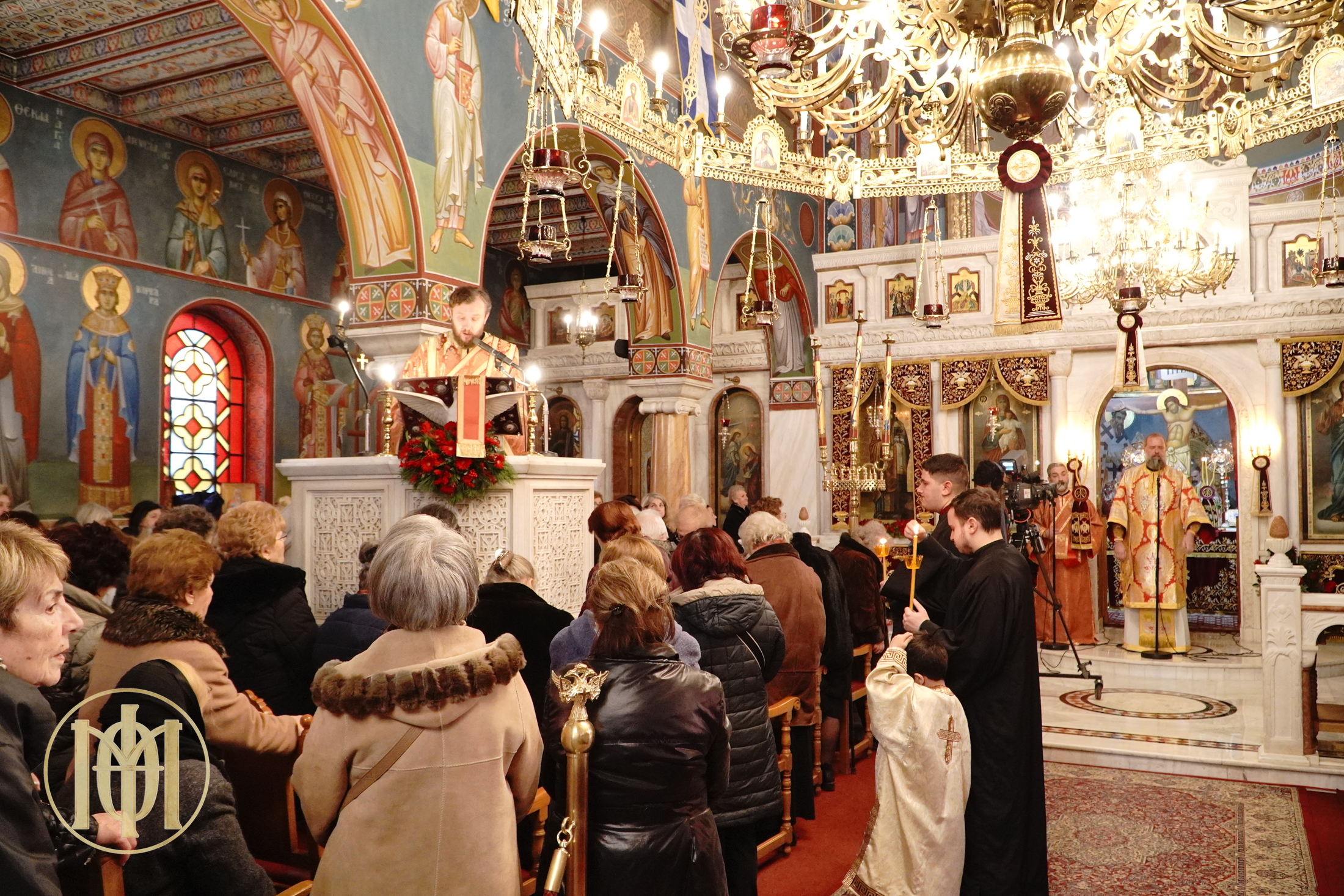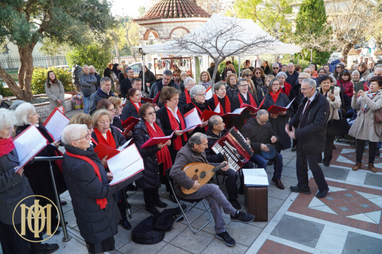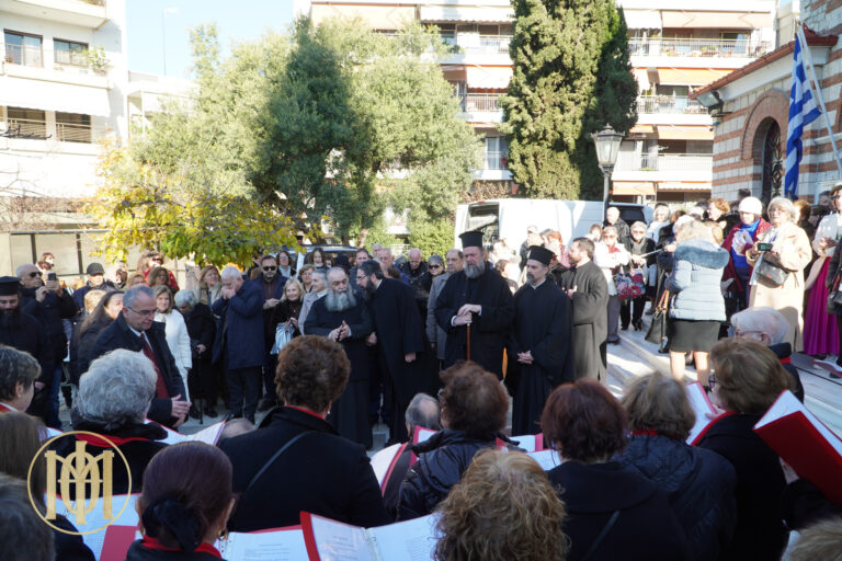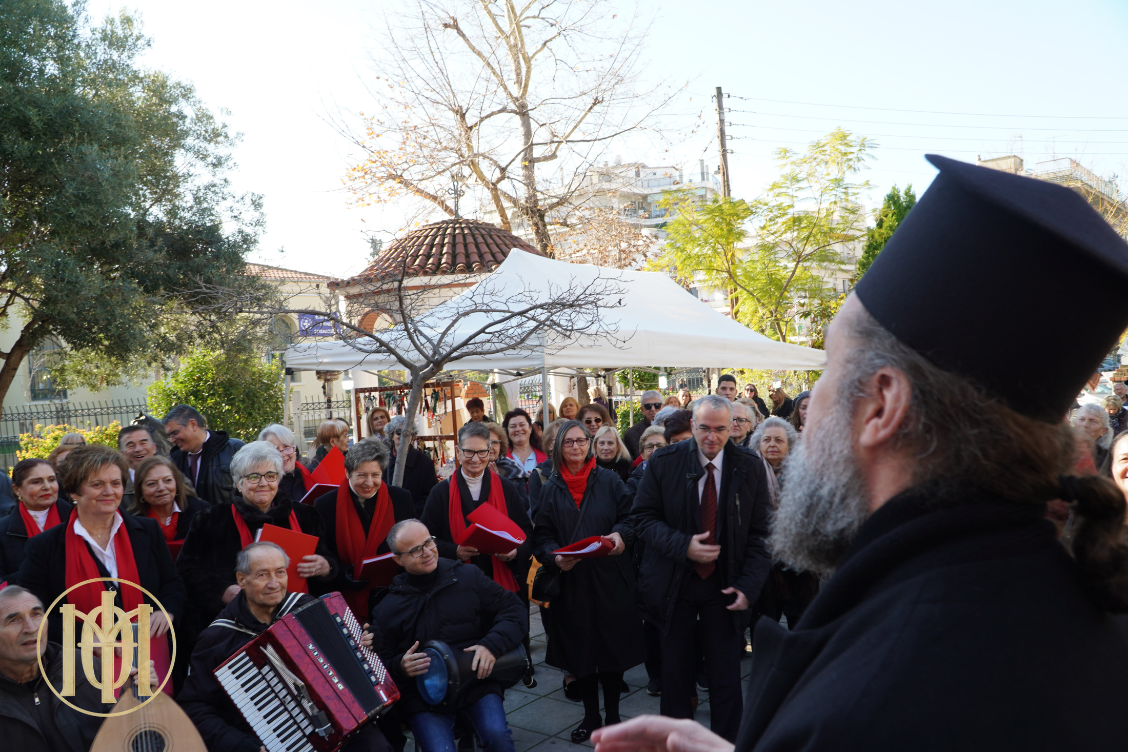 Στον αύλειο χώρο του Ιερού Ναού η γυναικεία χορωδία της Ενορίας υπό τη διεύθυνση του χοράρχη κ. Ευαγγέλου Ασημίνα παρουσίασε στον Ποιμενάρχη μας και στους πιστούς που βρέθηκαν εκεί χριστουγεννιάτικα τραγούδια και κάλαντα του Αγίου Δωδεκαημέρου.