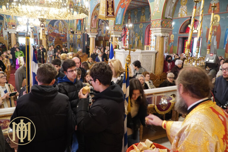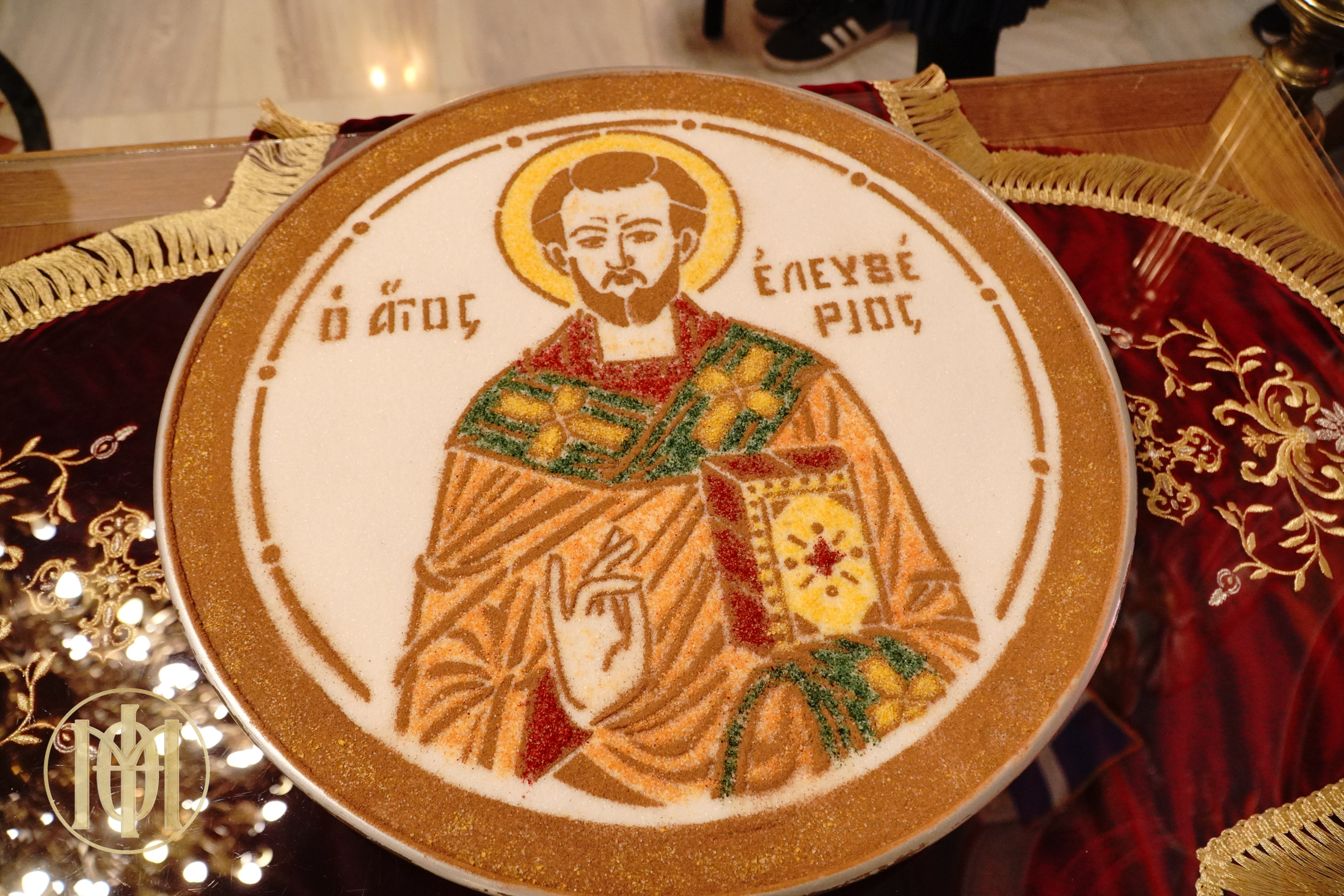 Προ της Απολύσεως ο Επίσκοπός μας ευλόγησε το κόλλυβο του Αγίου Ελευθερίου, το οποίο ετοίμασαν ευλαβείς ενορίτες, και ακολούθως ευχαρίστησε τον Πρόεδρο του Εκκλησιαστικού Συμβουλίου, π. Χριστόδουλο Παρτίδη, και τον συνεφημέριό του, π. Δημήτριο Τάνο, οι οποίοι, συνεργαζόμενοι με τα μέλη των Εκκλησιαστικών Επιτροπών, τους εργαζομένους και τους εθελοντές, προετοίμασαν άριστα τη φετινή Πανήγυρη.