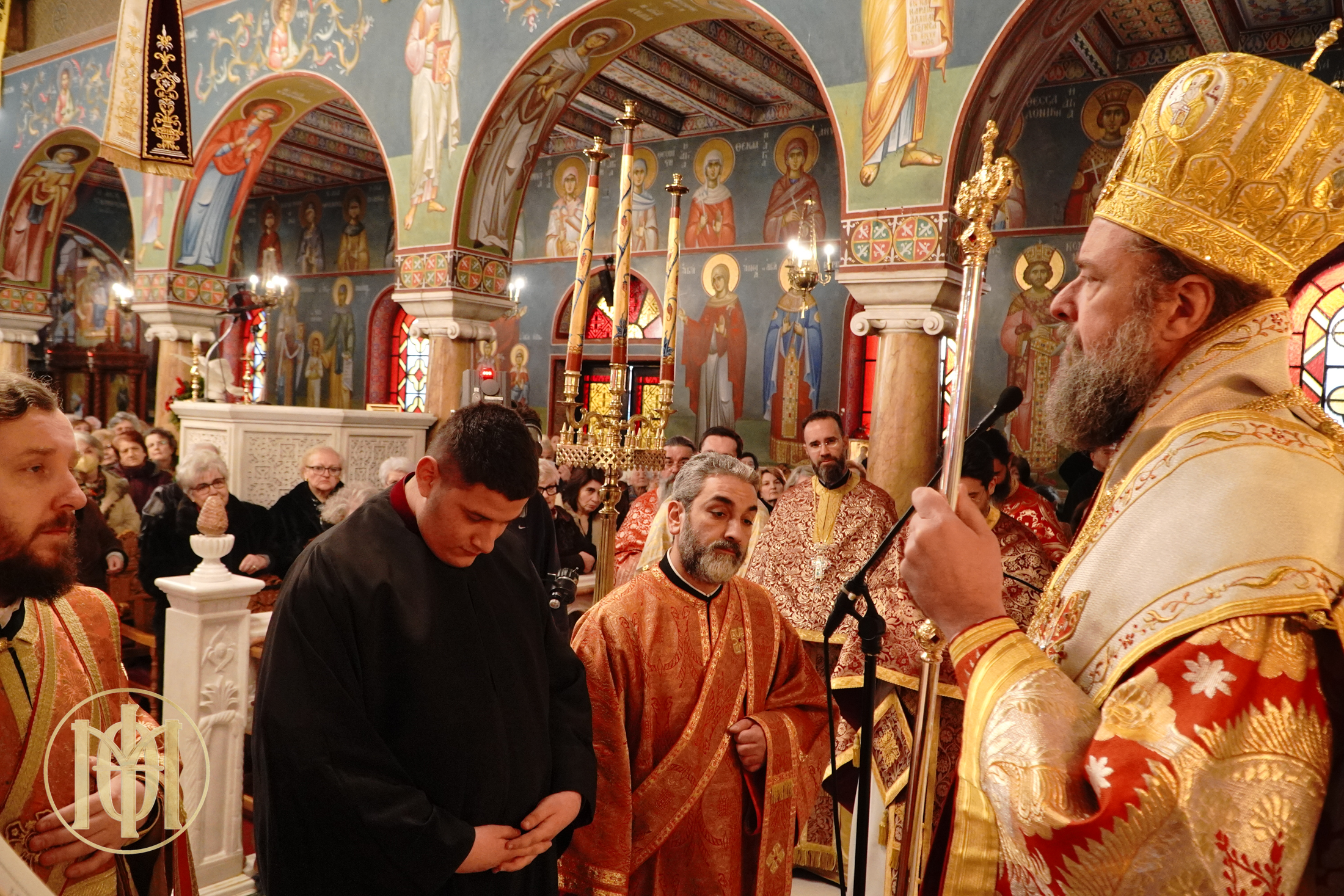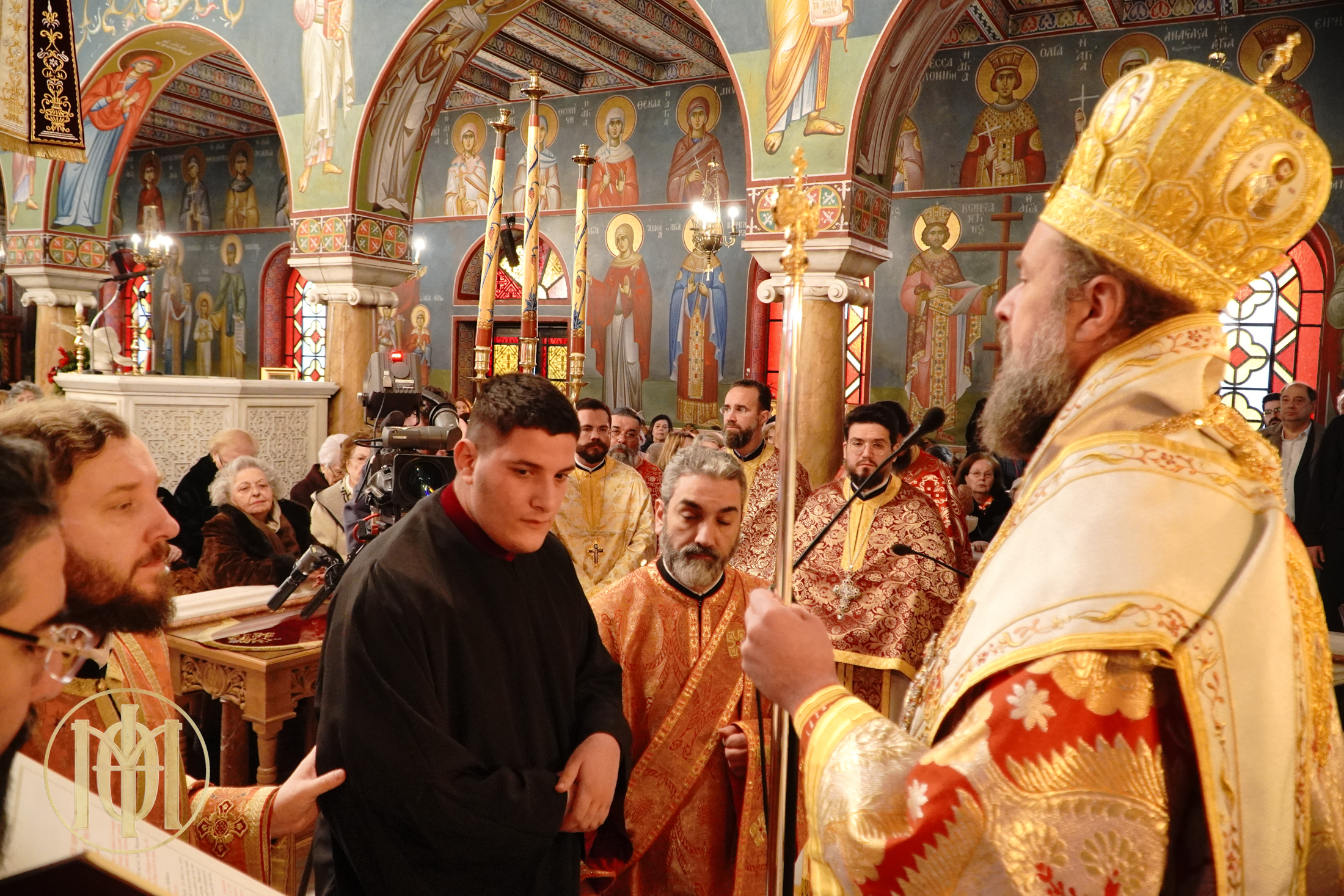 Προ της χειροθεσίας ο Ποιμενάρχης μας απηύθυνε ενώπιον του εκκλησιάσματος πατρικούς λόγους προς τον ευσεβή νέο και του ευχήθηκε να υπηρετεί την Εκκλησία με φόβο Θεού και αγάπη.