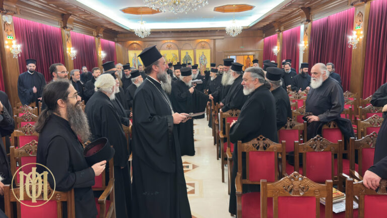 Ο Ποιμενάρχης μας, Μητροπολίτης Θεσσαλονίκης κ. Φιλόθεος, αφού καλωσόρισε τον σεβάσμιο προσκεκλημένο, τον παρουσίασε στους κληρικούς, πρεσβυτέρους και διακόνους, της τοπικής μας Εκκλησίας.