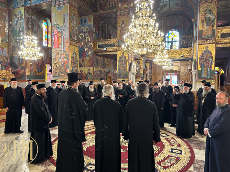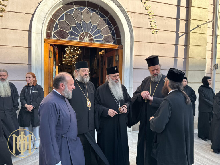 Ο Ποιμενάρχης μας συναντήθηκε με τους προσκυνητές εντός του Μητροπολιτικού Ιερού Ναού Αγίου Γρηγορίου του Παλαμά. Οι προσκυνητές ασπάσθηκαν με ευλάβεια το τίμιο λείψανο του Αγίου Γρηγορίου και τις ιερές εικόνες και έψαλαν πασχάλιους ύμνους και το απολυτίκιο του Αγίου.